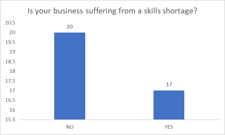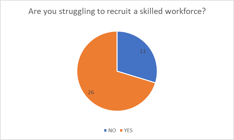 When asked what skills would help to improve the workforce the responses were varied but unusually for the responses we have received in other sectors there was less emphasis on soft skills and actually the skills asked were, were very specific industry skills such as CNC turners and setters. A number of responses were that the skills that they needed was industry experience.
