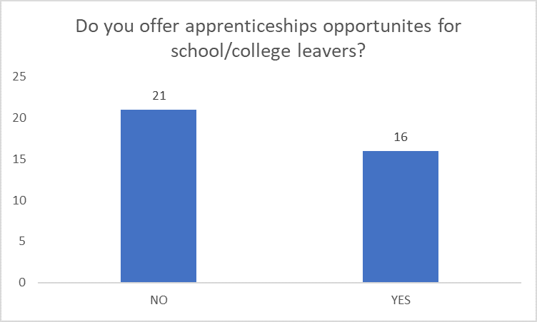 When asked why the business didn’t offer apprenticeships the main reasons were that they didn’t have enough information about how to take on an apprenticeship. A number said that they didn’t feel that the college courses met the industry needs and there was a gap here.